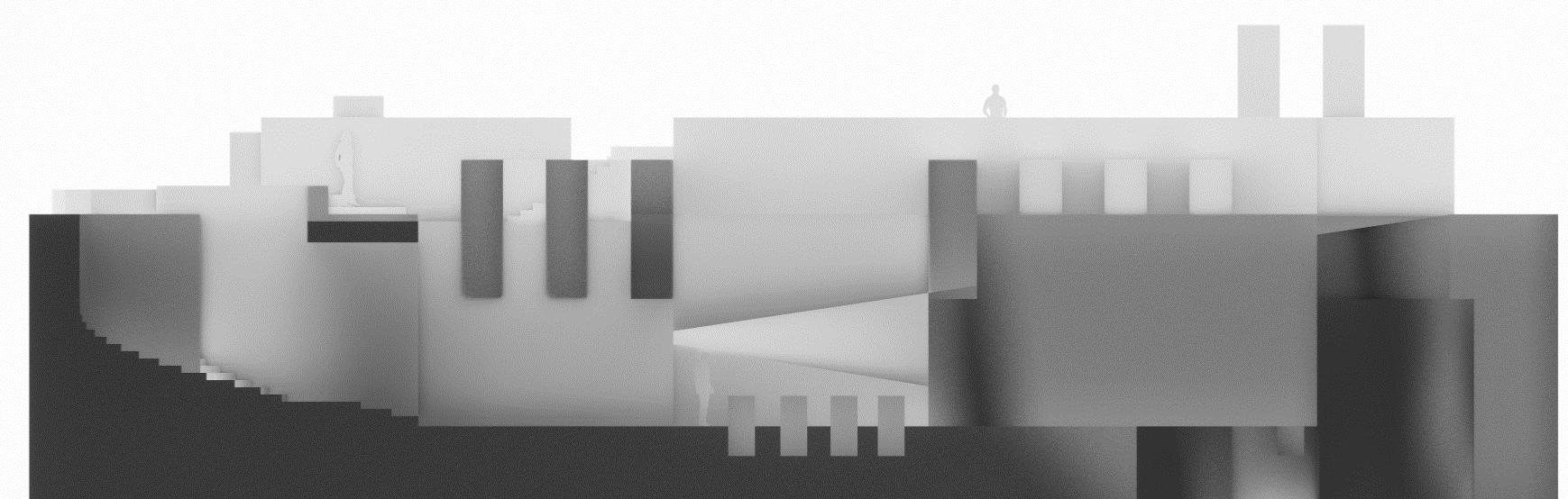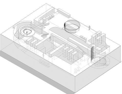 La volumetría resultante respeta las alturas predominantes del complejo, teniendo como bandera la creación de la mayor cantidad de espacio abierto transitable como anexo de las estancias de exposición