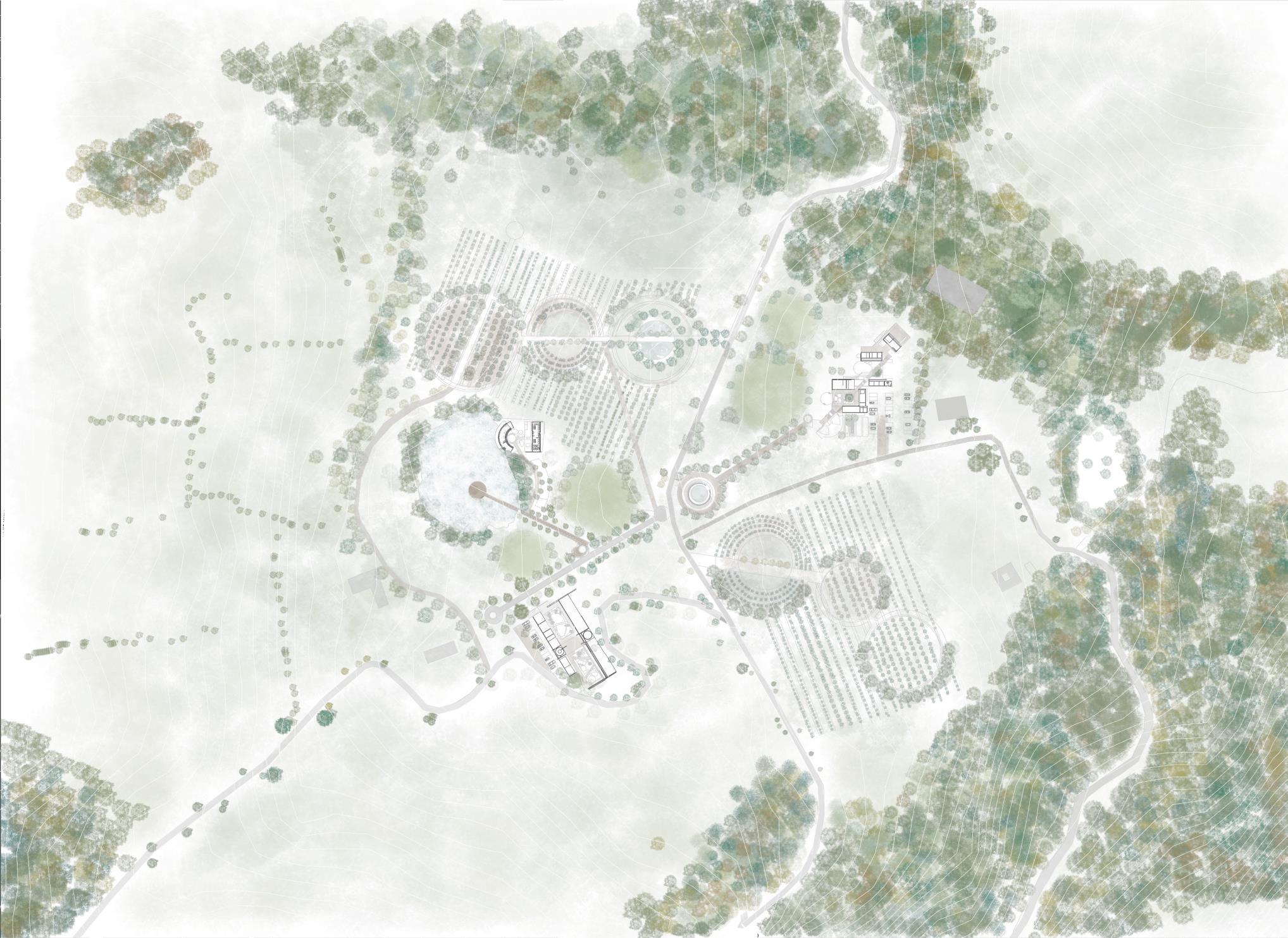 La excusa arquitectónica en este caso fue la planta de la hacienda colonial, tanto por su distribución interna como por su escala en relación al paisaje