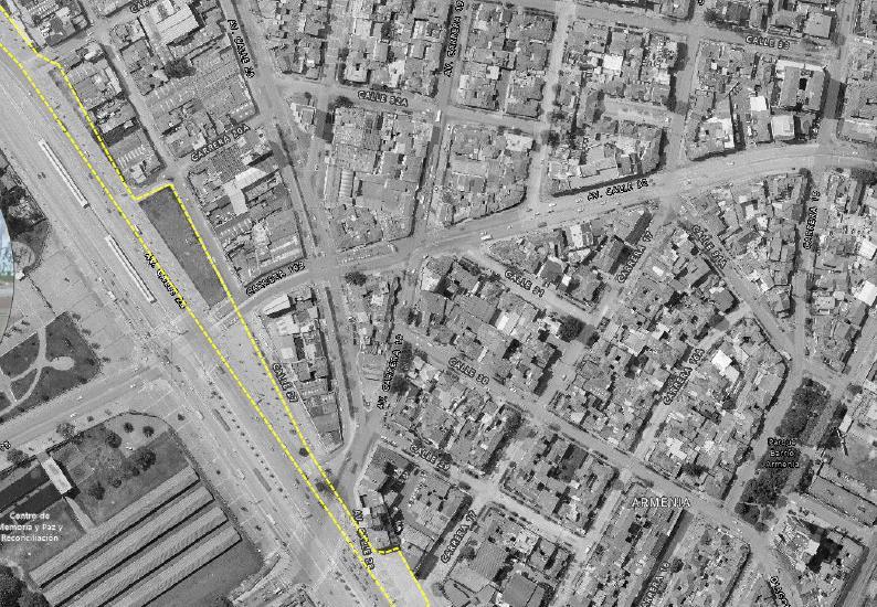 El esquema de llenos y vacíos relaciona la predominante actividad de vivienda y edificaciones de baja densidad con el amplio vacío generado por la presencia de la calle 26, Destaca el carácter ritual de la zona, en donde se ubican hitos arquitectónicos de importancia metropolitana, como el cementerio central, el cementerio de los pobres, el cementerio alemán y el nuevo centro de memoria