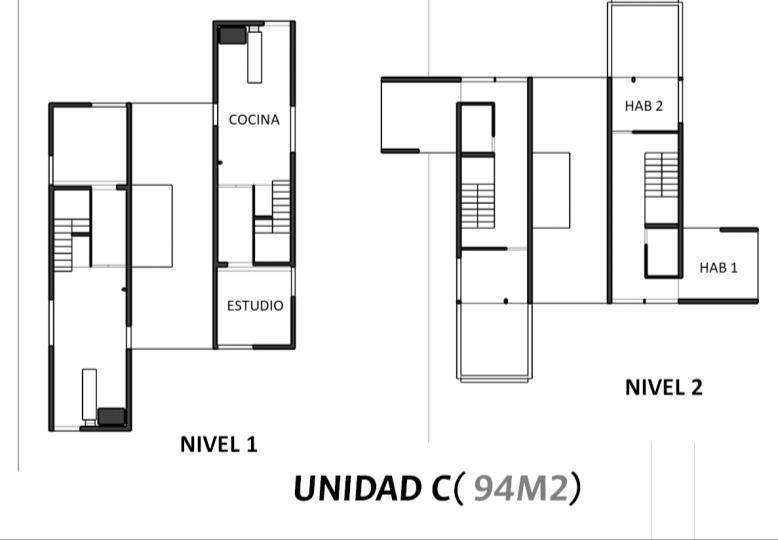 Las unidades son una evolución de las presentadas en el primer ejercicio, esta vez las células se fusionan dejando circulaciones intermedias y aumentando potencialmente la densidad habitacional, no solamente en morfología y cantidad, sino estudiando cuidadosamente la posible consolidación sociológica y humana de cada nodo, de esta forma se presentan distintas propuestas de habitantes para cada unidad