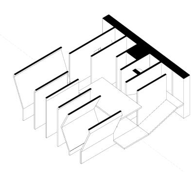 Este proyecto corresponde al tercer ejercicio, en donde se abordaron temas referentes a forma y ejecución geométrica, esta propuesta corresponda a un volumen estereotómico conformado por planos que gradualmente intercambian sus dimensiones para generar una experiencia a partir de la sombra