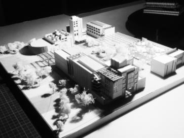 La maqueta enseña la calidad de la franja inferior de espacio publico, permeable y flexible