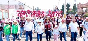 Blanca Osorio y Osvaldo Cortés, quienes son abanderados de la coalición “Sigamos Haciendo Historia” de los partidos Morena, PT y Verde Ecologista a la presidencia y a la diputación local por el Distrito XXXIX, respectivamente, encabezaron la caminata por la continuidad. (MÁS INFORMACIÓN PÁGINA 8 A GABRIELA PONCE)