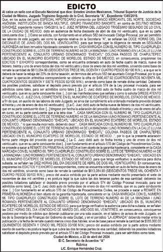 Martes 11 de junio de 2024 El diario HERALDO ESTADO DE MÉXICO es una publicación diaria. Editor responsable: Esteban Gildardo Peláez Bautista. Número de Certificado de Reserva de Derechos de Uso Exclusivo del Título que otorga el Instituto Nacional del Derecho de autor: 042022-030110194100-30. Número de Certificado de Licitud del Título y Contenido: en trámite. Domicilio de la publicación: Miguel Hidalgo y Costilla Poniente 505 B, Col. La Merced, Toluca Estado de México. Impreso en Talleres Belmont, ubicado en Vialidad Salvador Díaz Mirón No. 700 Colonia Salvador Sánchez Colín, distribuido por la Unión de Voceadores de Periódicos y Revistas del Estado de México, Honduras No. 205 Col. Américas. Toluca, Estado de México, resto del Estado distribución propia a través de oficinas regionales. Oficinas Tlalnepantla Calle Vallarta número 18, Int. 1 C.P. 54000, Tlalnepantla Centro, Edo. Méx. Teléfono 55 7258 3017, 55 7155 6757. Oficina en Zumpango Segundo Callejón de Uruguay sin número, Barrio de San Miguel, Zumpango, Estado de México. Teléfono: 01 (591) 611-49-68. Oficina en Texcoco, Calle 2 de Marzo número 215-A Int. 6, Col. Centro Texcoco, Méx. Teléfono: 01 (595) 95 516 97 Servicios Informativos NOTIMEX, miembros de la Cámara Nacional de la Industria Editorial No. 556. DIRECTORIO Responsable Editor y Director General: Lic. Esteban Peláez Bautista Subdirectora Janet Hernández Bárcenas Jefa de Redacción: Martha González Aguilera Coordinador Zona Texcoco: Youssef Buendía Huerta Coordinador Región Zona Norte: Salvador Marrón Suaréz Gte. de Publicidad: Susana Martinez de la Borbolla