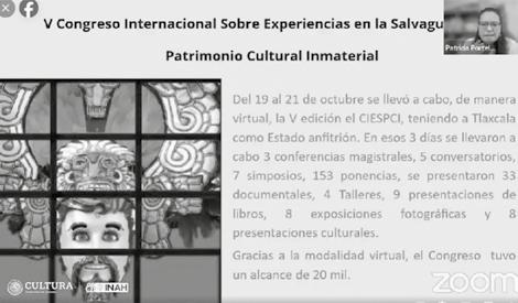 ño alcanzado en el rescate y la conservación del patrimonio vivo, de la mano de los pueblos originarios”, sostuvo la investigadora. Asimismo, destacó la participación, desde 2003, del AP con la Organización de las Naciones Unidas para la Educación, la Ciencia y la Cultura, y paralelamente con la ENAH, lo que ha permitido avanzar en la proyección y sistematización de la información y el manejo archivístico, para el adecuado acceso y difusión de sus contenidos. Por su parte, la investigadora etnográfica Patricia Portela Rodríguez apuntó que, entre 2019 y 2022, pese a la pandemia, las actividades del AP continuaron y se documentó parte del PCI de 25 municipios tlaxcaltecas.
