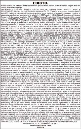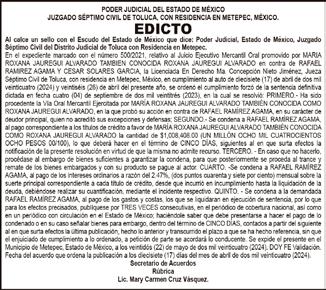 Martes 14 de mayo de 2024 El diario HERALDO ESTADO DE MÉXICO es una publicación diaria. Editor responsable: Esteban Gildardo Peláez Bautista. Número de Certificado de Reserva de Derechos de Uso Exclusivo del Título que otorga el Instituto Nacional del Derecho de autor: 042022-030110194100-30. Número de Certificado de Licitud del Título y Contenido: en trámite. Domicilio de la publicación: Miguel Hidalgo y Costilla Poniente 505 B, Col. La Merced, Toluca Estado de México. Impreso en Talleres Belmont, ubicado en Vialidad Salvador Díaz Mirón No. 700 Colonia Salvador Sánchez Colín, distribuido por la Unión de Voceadores de Periódicos y Revistas del Estado de México, Honduras No. 205 Col. Américas. Toluca, Estado de México, resto del Estado distribución propia a través de oficinas regionales. Oficinas Tlalnepantla, Calle Vallarta número 18, Int. 1 C.P. 54000, Tlalnepantla Centro, Edo. Méx. Teléfono 55 7258 3017, 55 7155 6757. Oficina en Zumpango, Segundo Callejón de Uruguay sin número, Barrio de San Miguel, Zumpango, Estado de México. Teléfono: 01 (591) 611-49-68. Oficina en Texcoco, Calle 2 de Marzo número 215-A Int. 6, Col. Centro Texcoco, Méx. Teléfono: 01 (595) 95 516 97 Servicios Informativos NOTIMEX, miembros de la Cámara Nacional de la Industria Editorial No. 556. DIRECTORIO Responsable Editor y Director General: Lic. Esteban Peláez Bautista Subdirectora Janet Hernández Bárcenas Jefa de Redacción: Martha González Aguilera Coordinador Zona Texcoco: Youssef Buendía Huerta Coordinador Región Zona Norte: Salvador Marrón Suaréz Gte. de Publicidad: Susana Martinez de la Borbolla
