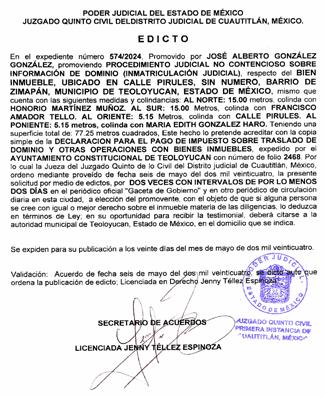El PJEM precisó que dicho plazo vence el próximo 3 de agosto. Así lo determinó el juzgador durante la audiencia realizada el lunes para solicitar la prórroga del mismo.