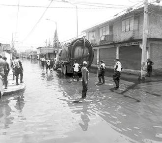 Conflicto entre vecinos en Chalco por aguas negras depositadas en otras calles CHALCO — Sube nuevamente el nivel de agua en Culturas de México en el municipio de Chalco, y como medida para desalojarlas es mediante el bombeo con mangueras. Las aguas son succionadas a calles de la colonia vecina de Covadonga, lo que ha ocasionado confrontación entre vecinos. (Más información página 7 A María Isabel Sánchez L).