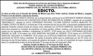 Como un acto de reconocimiento, agradecimiento y justicia a los campesinos y productores mexiquenses, la gobernadora del Estado de México, Delfina Gómez Álvarez encabezó la entrega de 600 documentos agrarios que, destacó, brindan seguridad y certeza jurídica a ejidatarios y comunales sobre la tenencia de su tierra. (MÁS INFORMACIÓN PÁGINA 5 A Areli Díaz) CON ENTREGA DE DOCUMENTOS AGRARIOS, BRINDAN CERTEZA A CAMPESINOS