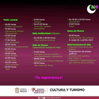 Culturales, resaltó cuál es el objetivo de las noches de Museos; “la intención es que los 27 museos que forman parte de la red de museos del Valle de Toluca abran sus puertas el tercer viernes de cada mes, una vez museo y que se tengan estas programaciones especiales y con ellos que las personas se pueden relacionar con el arte y la