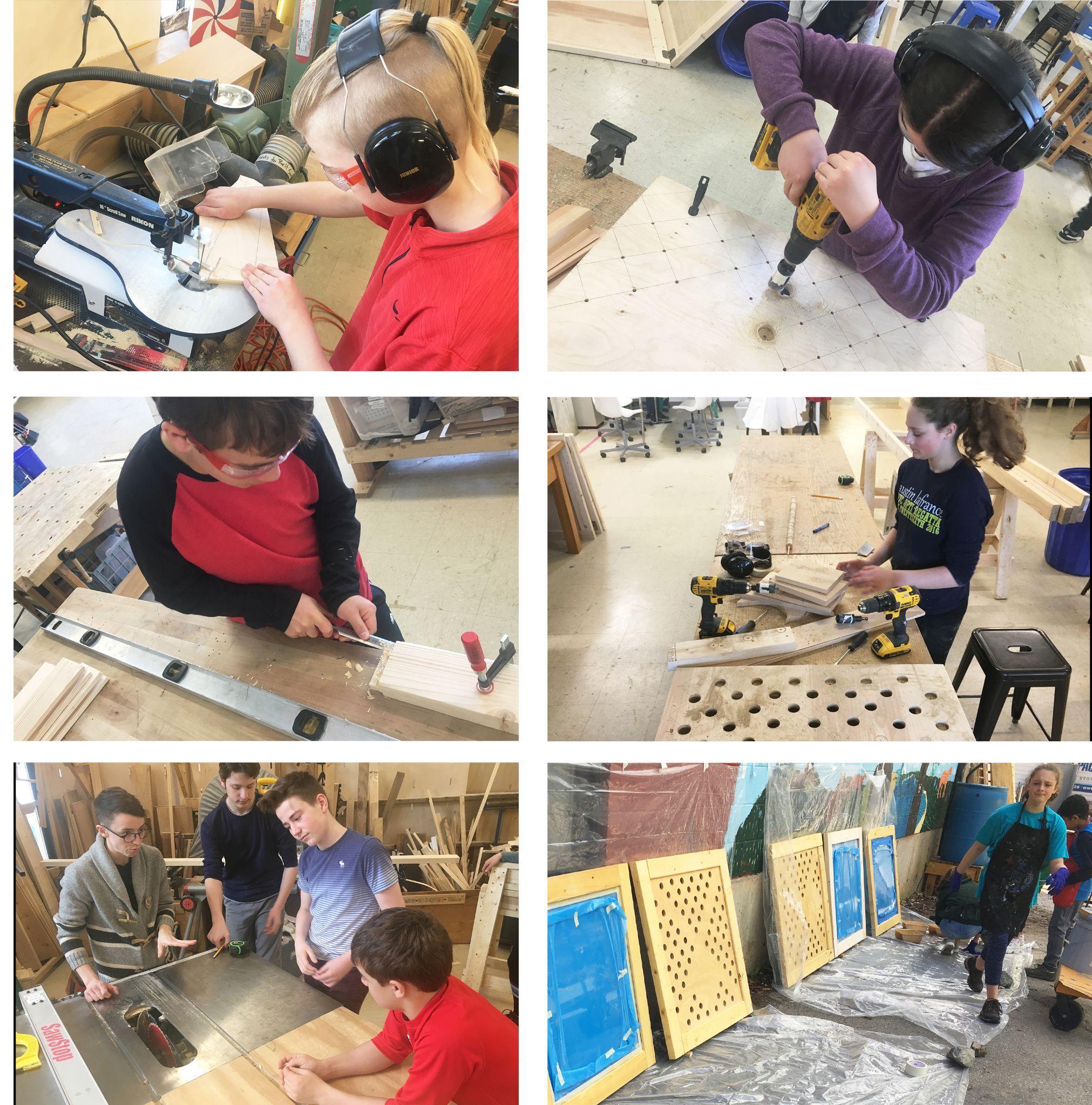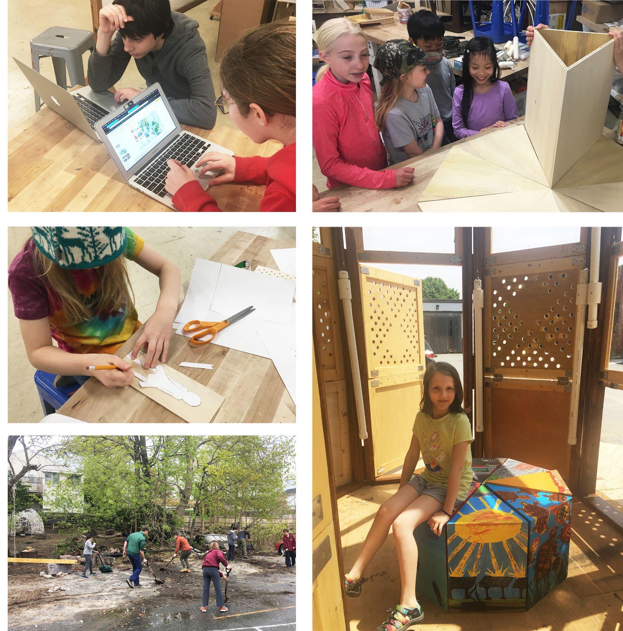 Getting it done, even when it’s tedious and mundane cleanup Communicating scale and creating connections: elementary students making scale figures for the model Budgeting and project planning: learning how to communicate effectively with different stakeholders Contributing part of the whole: 8 core classes = 8 representative stools for each of the 8 sides of the structure. Each class representative painted their stools with their class’ version of the all school theme/ Making new friends across ages.
