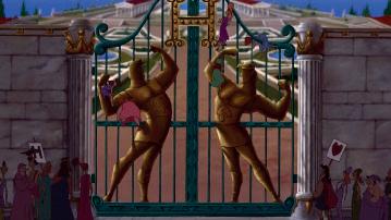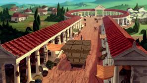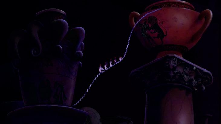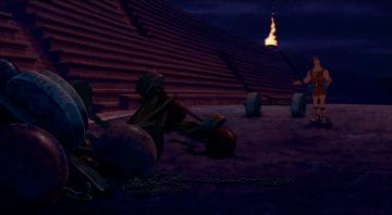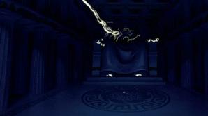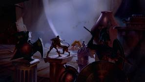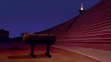 La estatua de su padre toma vida y ellos hablan a través de ella, su padre le dice toda la verdad, que Hades lo volvió mortal y para volver a tener su inmortalidad debe convertirse en un Héroe. Y para eso hacerlo le brinda la compañía de su caballo llamado “Pegaso”.