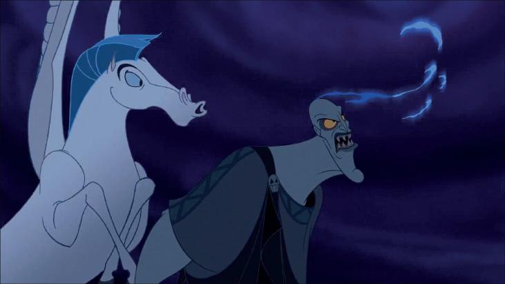 Hades es tan malvado como divertido. Además de ser el maestro y gobernante del inframundo, es el dios de los muertos. Hades tiene la piel azulada-grisácea teniendo una llama azul en lugar de pelo. Cuando se pone furioso tanto su piel como la llama de su cabeza se vuelven rojas rodeándose al mismo tiempo de fuego. y celoso de su hermano Zeus, el líder de todos los dioses. Quiero ser el rey de los dioses, porque esto necesita terminar con su hermano, pero por esto debe deshacerse de Hércules. Tiene un acompañamiento de dos diablillos llamado penalización y pánico, y Meg, una niña que pertenece a Hades porque vende su alma, a pesar de afortunadamente para él, al final salió de esta carga.