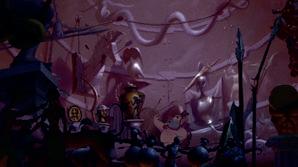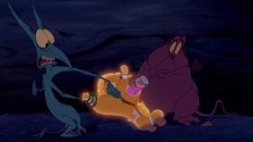 Hades intenta detener a Hércules, pero el lo golpea al lago de la muerte, y las almas se lo llevan con ellos, Hércules llega con el alma al cuerpo de margara para volverla a la vida.