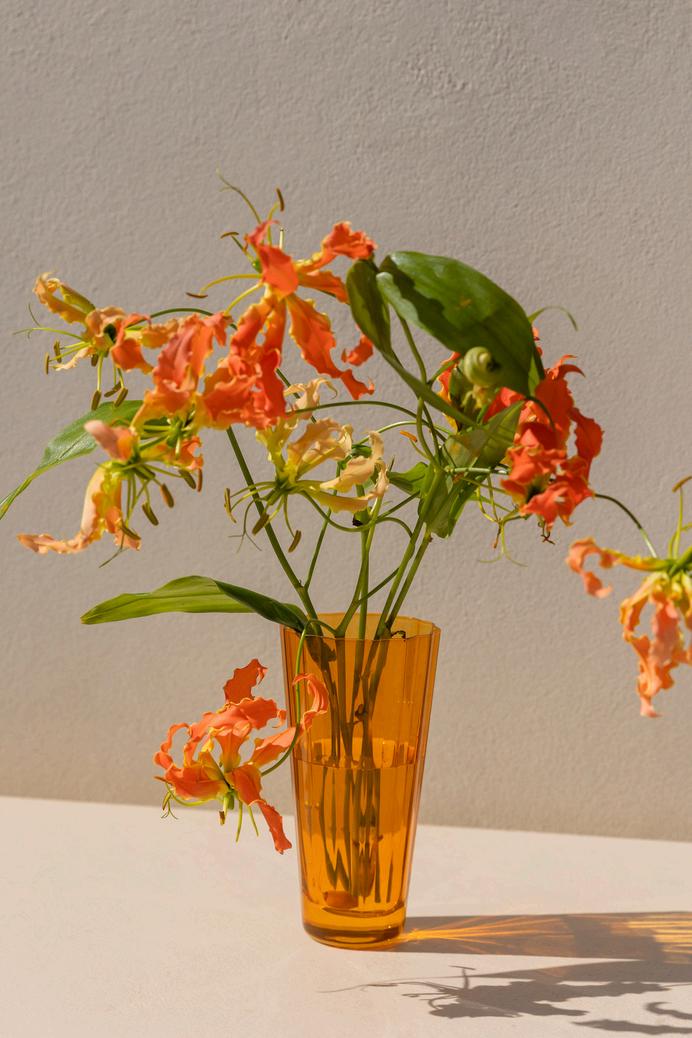. Amber Smoke Sunday Vase $395. Lavender Sunday High Ball $120-$250. Blush Pink Sunday High Ball $120-$250. Emerald Green Sunday Low Ball $110-$225 Rose Sunday Vase $395 Butterscotch Sunday High Ball $120-$250. Yellow Sunday High Ball $120-$250.