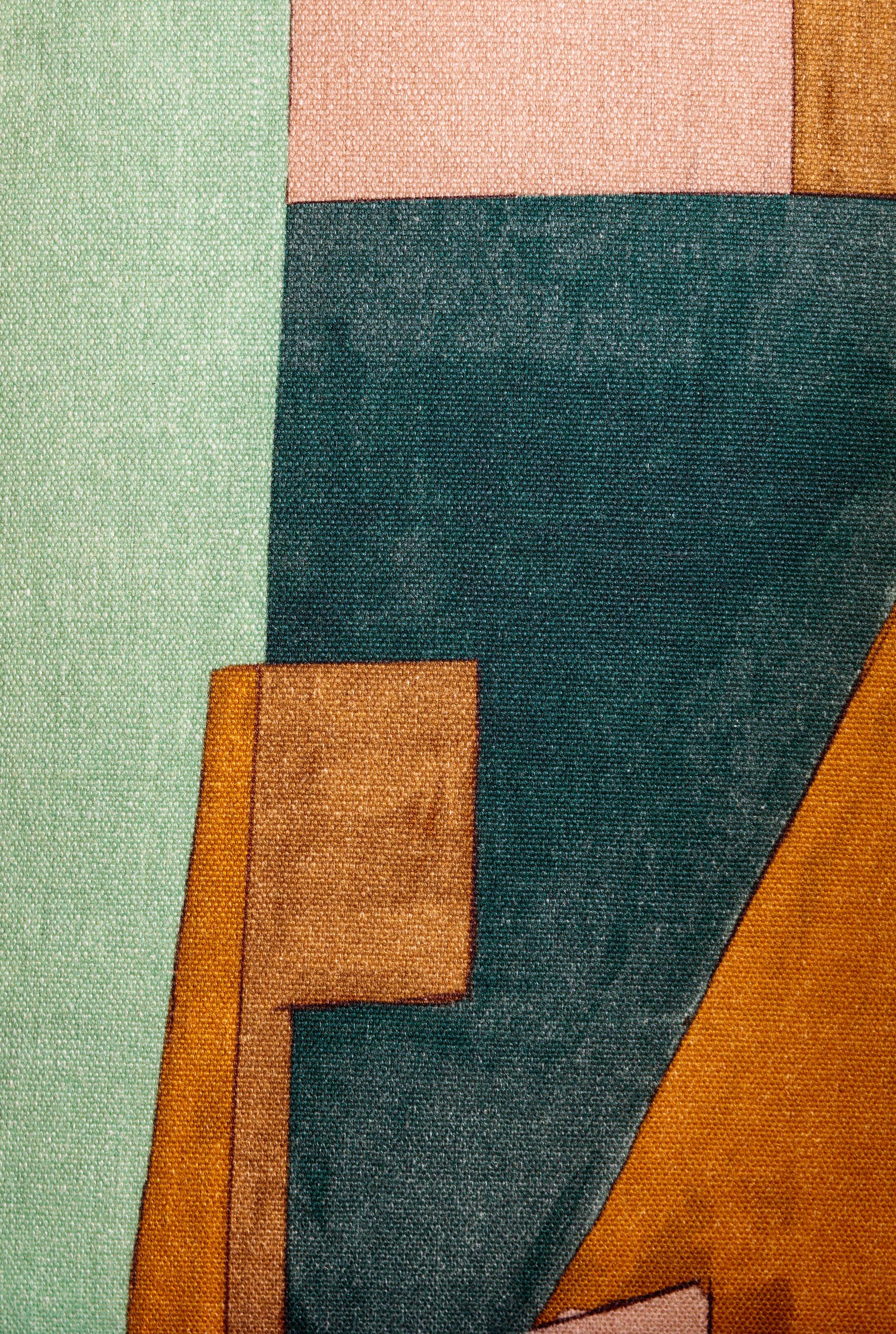A pair of Utrecht chairs by Gerrit Rietveld upholstered in Kelly’s district fabric.