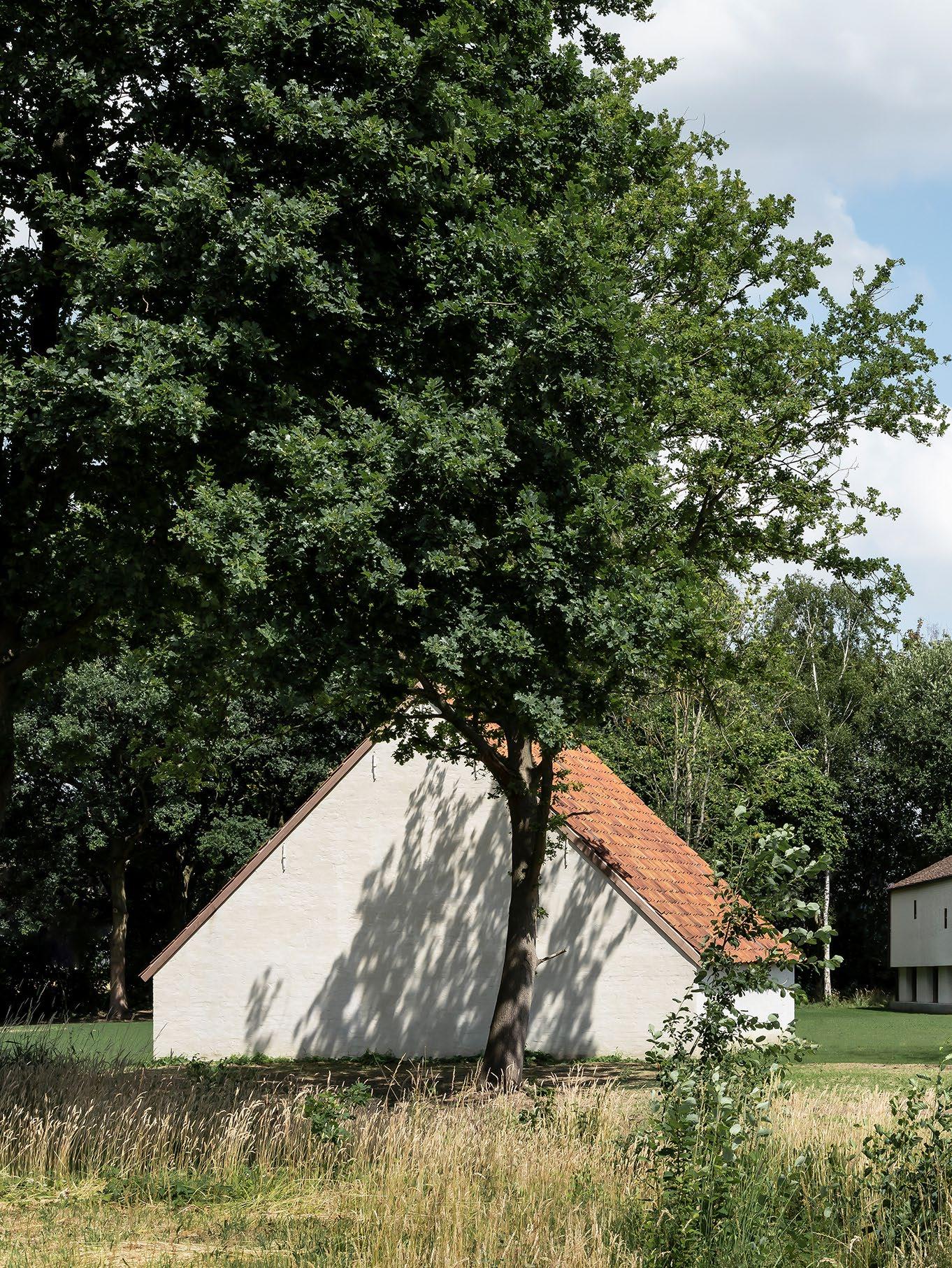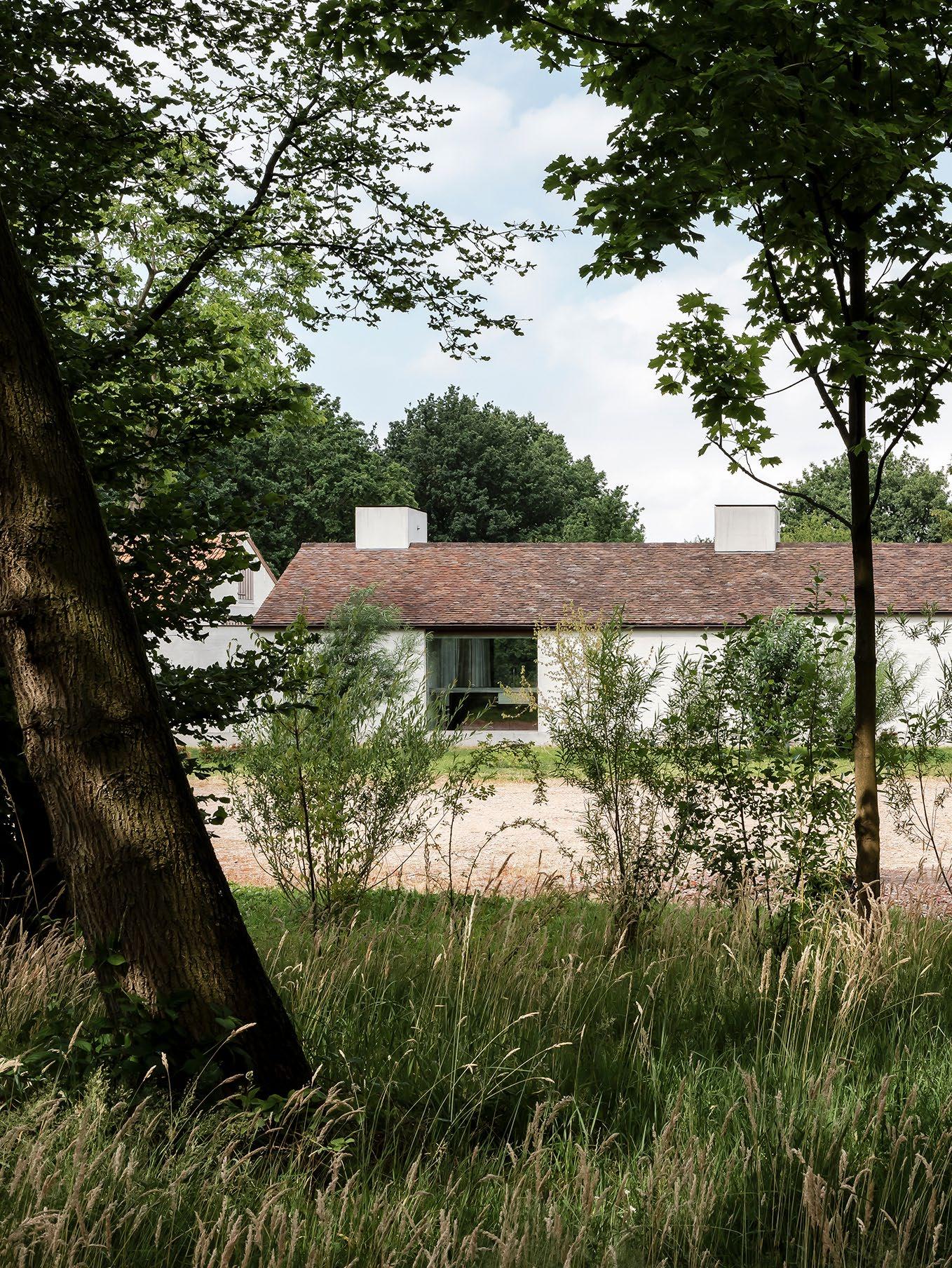 Hans' use of construction materials also adds to the farmstead’s established feel. “The facing brick is roughly plastered, and the roof is made from tiles recovered from Burgundy, France. However, the plan structure and spatial perception are contemporary and refined. It makes the whole timeless and creates a certain imperfection, which immediately accentuates the craftsmanship”, he says.