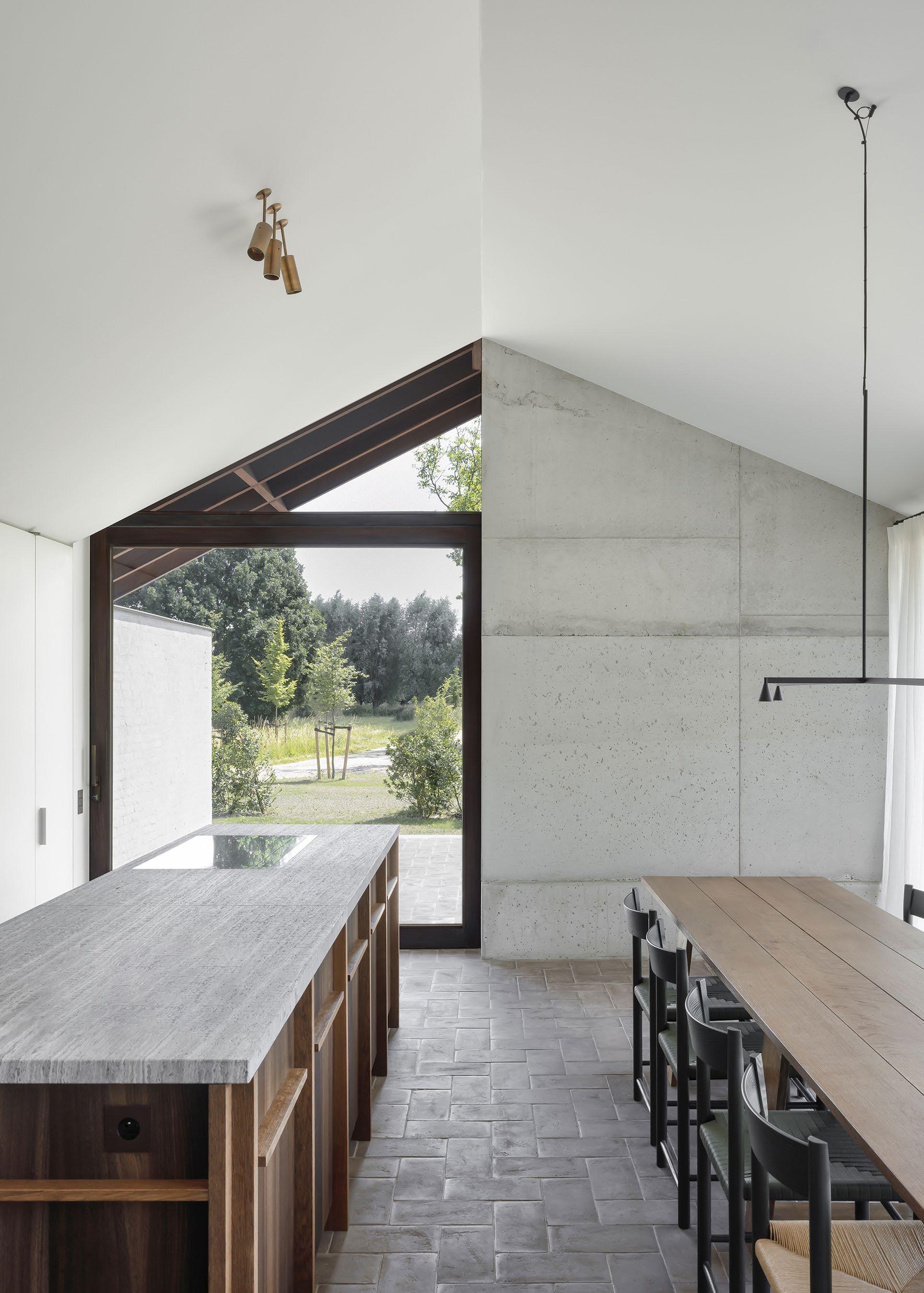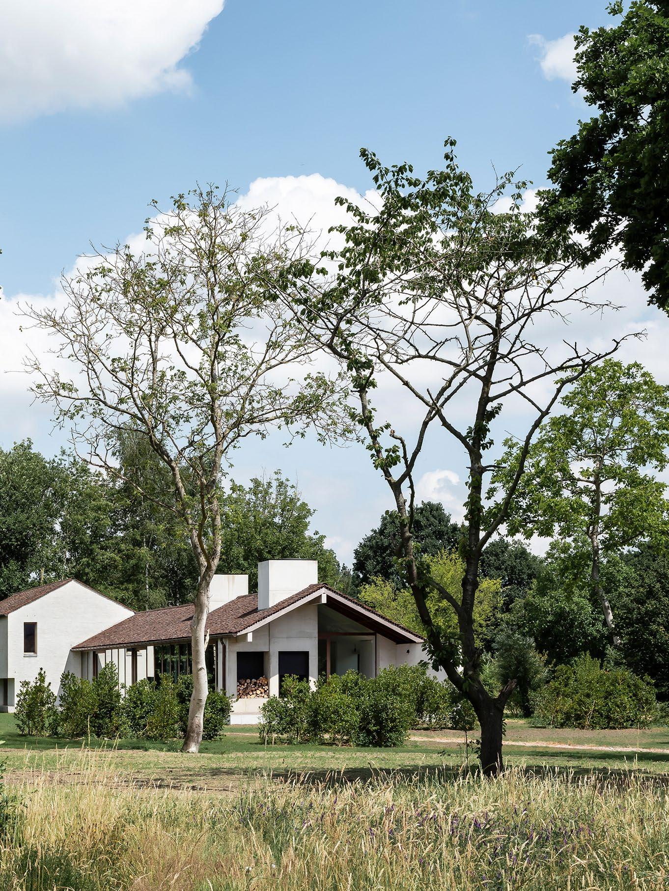 In a collaborative partnership with Brussels-based landscape architect Erik Dhondt, the home’s enclosing gardens have been enhanced and ‘the plot’s character has contributed to the home’s ‘grounded’ feeling. “Erik Dhondt ensured the surrounding landscape could be experienced in different ways from the home, sometimes cinematically, sometimes framed as a still life,” Hans says.