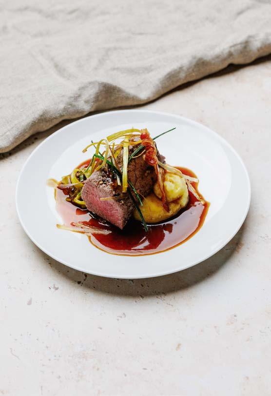 Sous Vide Rinderbrust • ErdäpfelMousseline • Lauch-Speck • Traubenreduktion F G L O