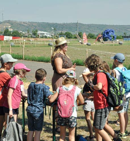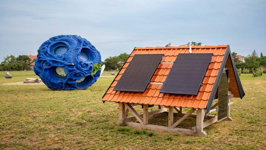 ein Batteriespeicher, eine Ladesäule, ein portables Windrad, Floating-PV am Wasser, PV-Bodenpflaster und mehr ausgestellt. Diese sind auf ansprechende und pädagogische Weise mit diversen Lern-, Spiel- und Erlebniskomponenten gebracht, die den Fokus auf erneuerbare Energie bzw. biologische Landwirtschaft lenken und so Kinder jeden Alters das Thema spielerisch näherbringen.
