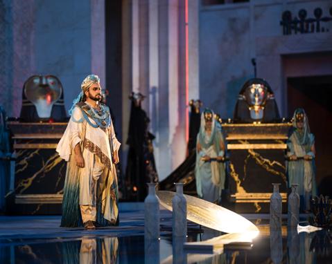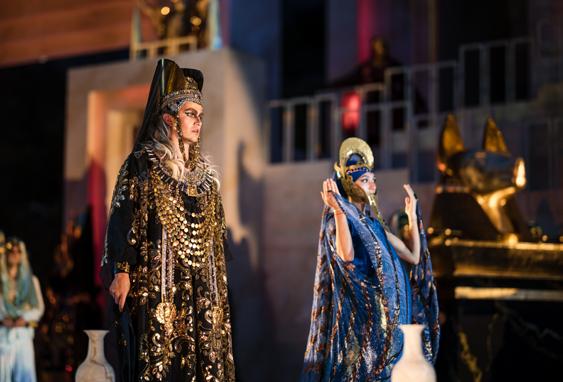 Strassberger hat bereits 2021 mit seiner Inszenierung von Turandot unser Publikum begeistert und bringt auch dieses Mal seine Expertise in die Produktion ein. Unterstützt wird er von Giuseppe Palella, dessen Kostümdesign die prachtvolle Welt des alten Ägypten zum Leben erweckt. Die Kombination aus visuellen Speziale ekten, beeindruckenden Videoprojektionen und einer innovativen Wassershow verspricht einen unvergesslichen Abend.