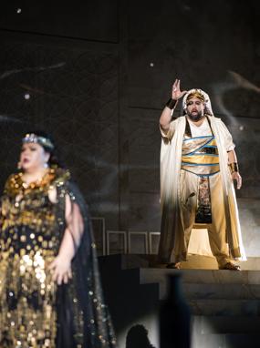 It is a moonlit night, and singing can be heard from the temple of Isis. Ram s leads Amneris up to the temple, so that she can pray for the goddess’s blessing on the eve of her wedding day. Nearby Aida is hiding, waiting for Radamès, who has asked her to meet him there: if this is to be their nal farewell, she will throw herself into the Nile. She thinks longingly of the distant homeland that she will never see again. Someone comes – but it is Amonasro. He has realised that Aida is in love with Radamès and wants to use his daughter as a spy. He tells her to coax Radamès