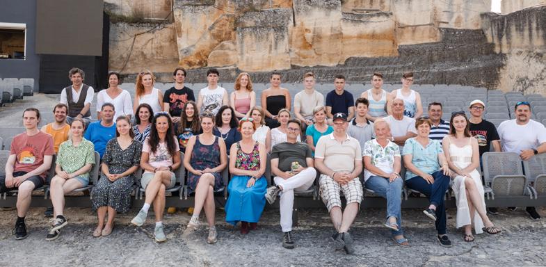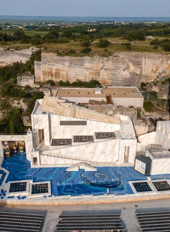 Der Steinbruch St. Margarethen enthält zwei in Stein gehauene Arenen: die große Bühne mit 7.000 m2, ein riesiger Konzertsaal unter freiem Himmel mit fast 5.000 Zuschauerplätzen, und die kleinere Ru nibühne mit bis zu 2.200 Plätzen. Seit mehr als 20 Jahren wird nun schon auf der Hauptbühne große Oper dargeboten. Keine andere Freilu bühne dieses gewaltigen Ausmaßes weltweit versetzt die kulturelle Hochform der Oper in ein solch spannungsgeladenes Verhältnis zum Kreatürlichen, zum Ursprung unseres Seins. Die Opernau ührungen im Steinbruch vereinen Natürliches mit der hohen Kultur, also mit vom Menschen Gescha enem. So wird auch in den Opern ein Widerhall des Steinbruchs und seiner Geschichte spürbar: Hier wurde gearbeitet, Rohmaterial für große Bauwerke gescha en. Mensch und Natur waren manchmal im Gegensatz,