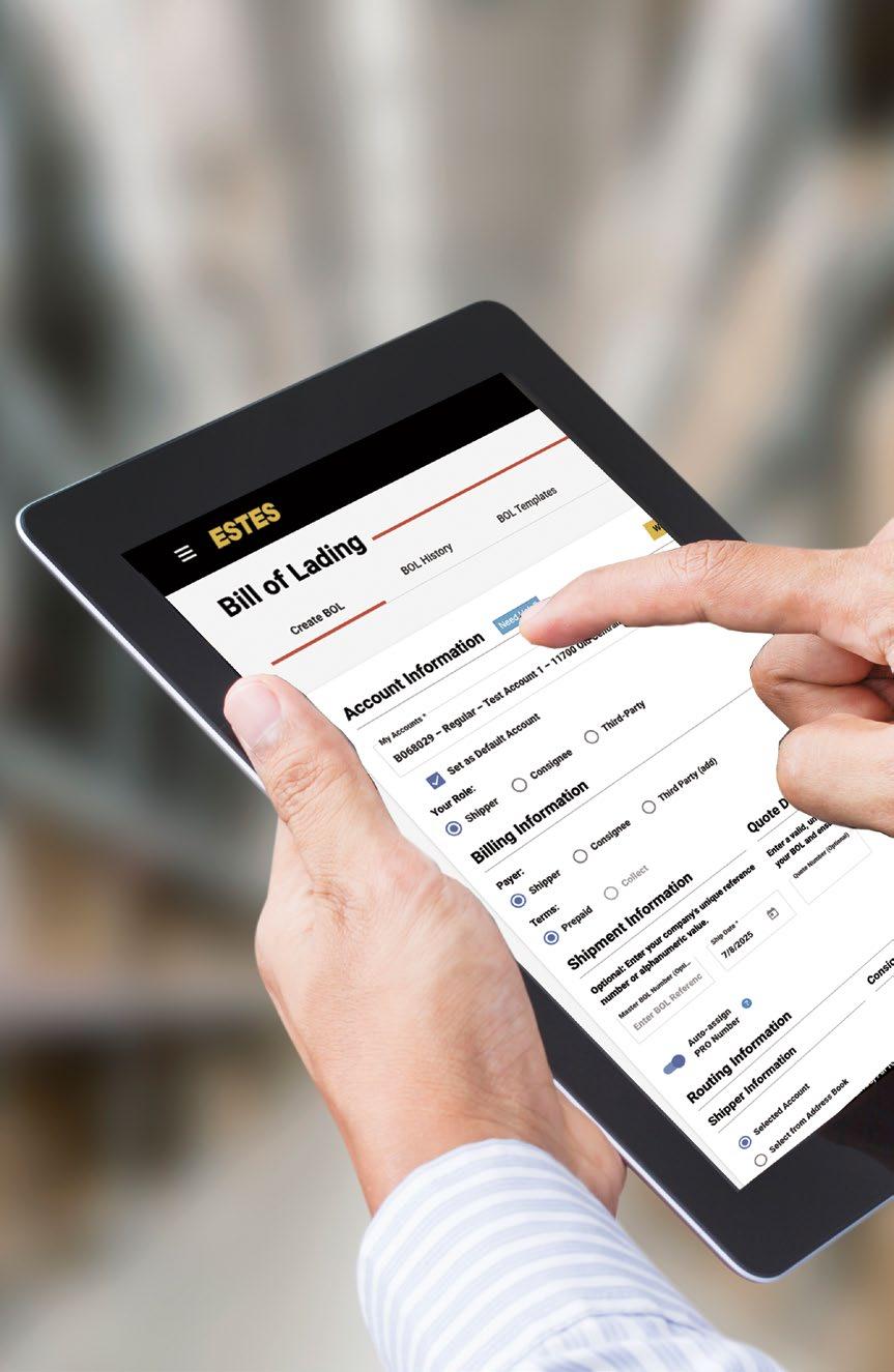 Estes is committed to investing in technology that makes freight shipping easy. That’s why we designed our My Estes shipping tools to move you seamlessly between our Rate Quote, Bill of Lading, and Pickup Request applications for a more streamlined shipping experience. And we offer realtime pickup visibility, enhanced shipment tracking, and other intuitive digital solutions.