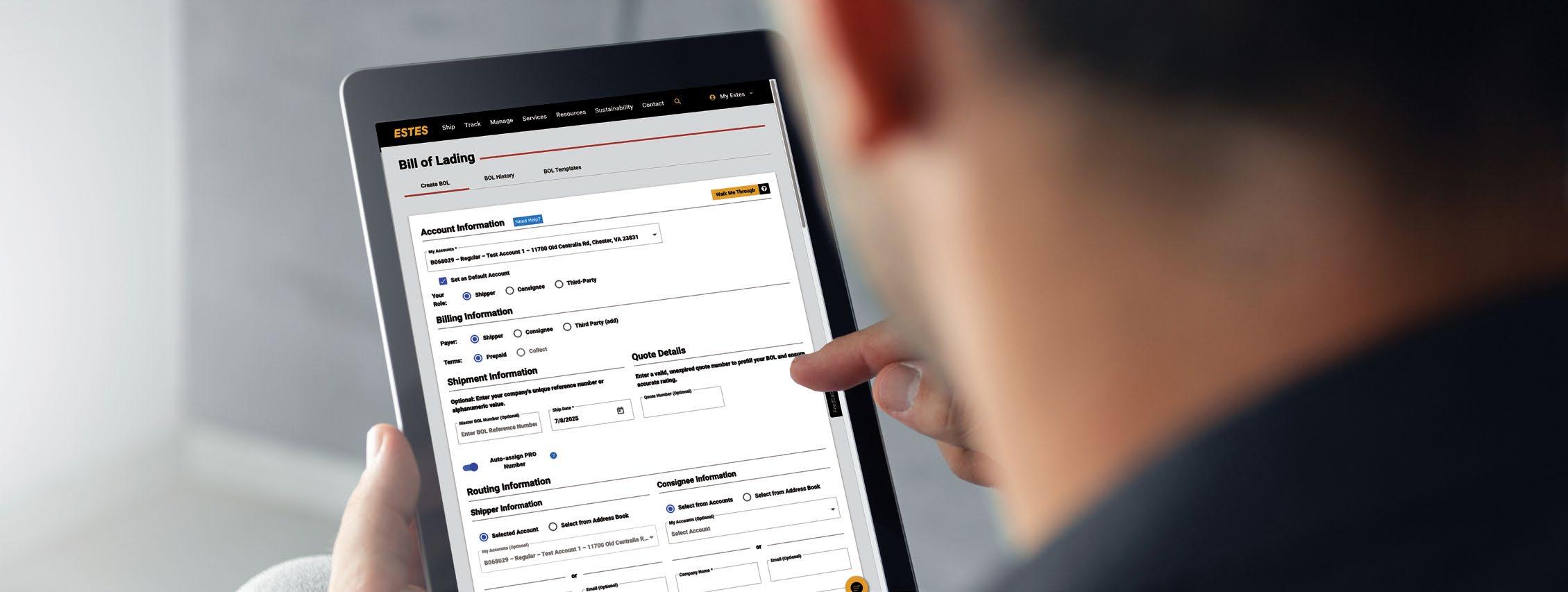 My Estes is a secure portal that houses account-specific applications to make freight shipping even easier. The portal offers a range of helpful resources to streamline the shipping process, including virtual walkthroughs, tooltips, howto guides, and more. Once registered, you’ll have access to our full suite of applications, including: