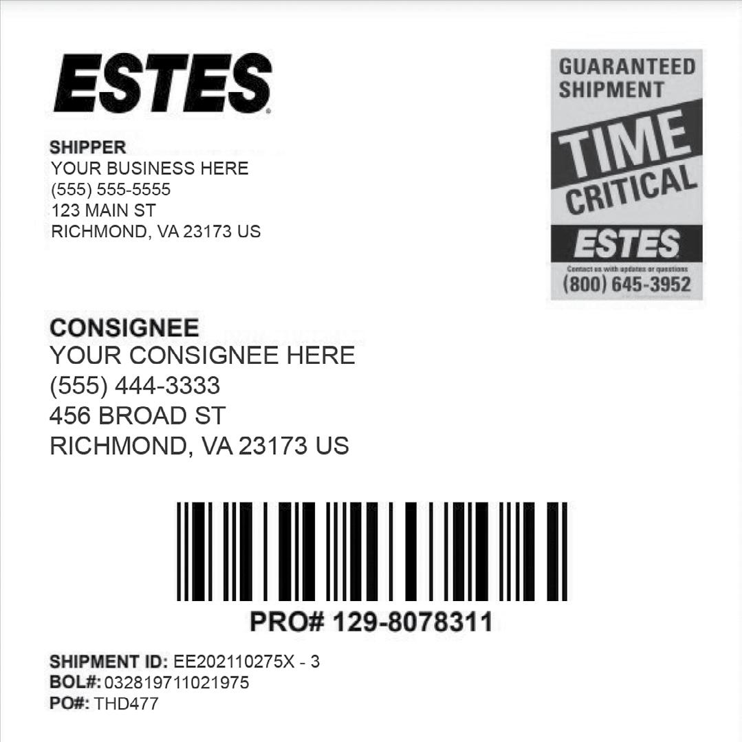 Time Critical Guaranteed: An Estes service that offers more standard benefits than any other carrier, including guaranteed on-time delivery, damage-free shipments, on-time appointments, and on-time pickups.
