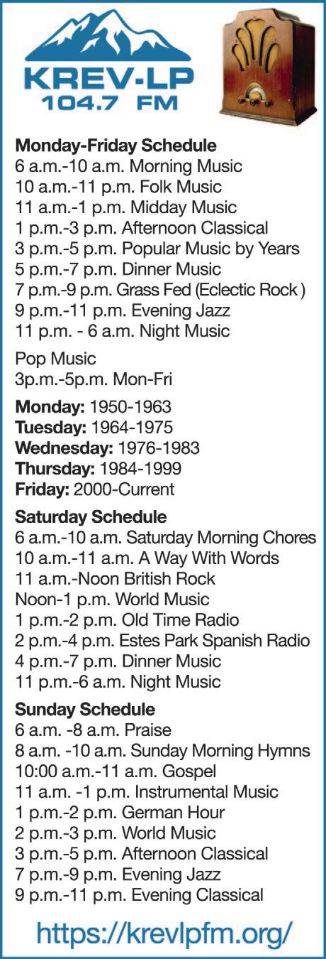 All editorial, photo content & graphic design is copyright of Estes Park News, Inc. & can not be reproduced without the expressed written consent of Estes Park News, Inc. ©2023 For subscription information contact us. DEADLINES Reserve space: Monday by 4:00 pm Final submissions: Tuesday by Noon Classifieds: Deadline Wed. by Noon Estes Park News, Inc. is Independent & locally family owned. Our Main Headquarters is at 1191 Woodstock Drive Suite #1 Mail: PO Box 508 Estes Park, CO 80517 *US nternal Revenue Code Sec. 25(C) effective Jan. 1, 2023, for heating a residence For more details visit CentralBoiler com. Consult a tax professional with any questions CentralBoiler.com