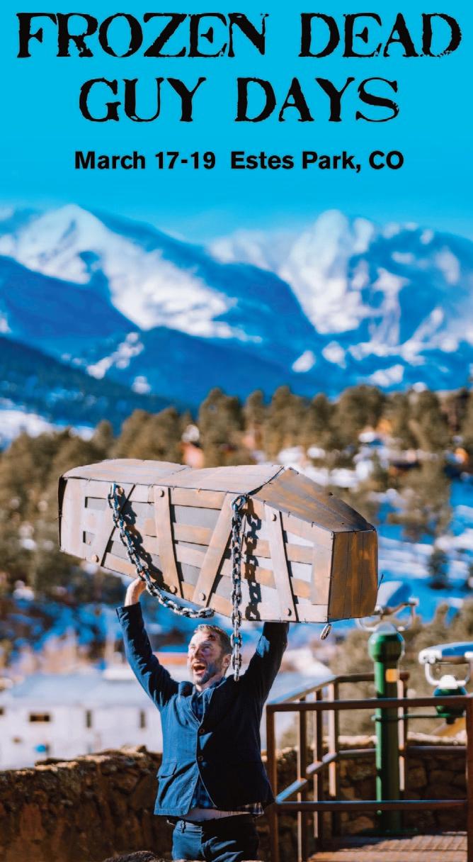 XXIII-1161 March 17, 2023 Estes Park News is printed weekly and is free online daily for the most current updates. FREE 48 PAGES Make A Splash! Giveback to the community with the Polar Plunge at Frozen Dead Guy Days! Hosted by Coffee on the Rocks, each $10 entrant fee will go to the Estes Park Nonprofit Resource Center to support their Giving Guest Program.