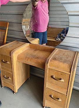 Art Decco Style Dresser and Vanity w/ mirror. From the late 1940’s. Both are in good condition. Mirror will need to be replaced. $350. Call David (702)285-4445