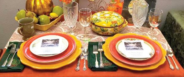 Two new tables have appeared around Estes Park: one in the window of Mac donald Book Shop and one at Lizzy’s at the Elizabeth Guild Thrift Shop. Both have autumnal themes that inspire cele bration of the colorful season. Orange pumpkins, orange plates, or ange flatware, orange candles, and spider webs call out the Halloween message with a flair in Macdonald’s window. This is a sample of what may be encountered at the Creative Colorado Tablesettings/Scapings event hosted by the Estes Park Museum Friends & Foun dation, Inc. This year's theme is Celebra tions, Then & Now. Sign up to be a con testant or come as a guest to view all the wonderful celebration tables.
