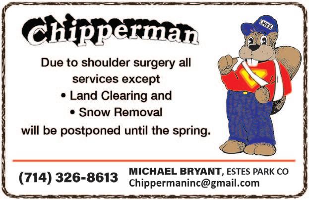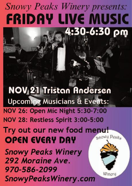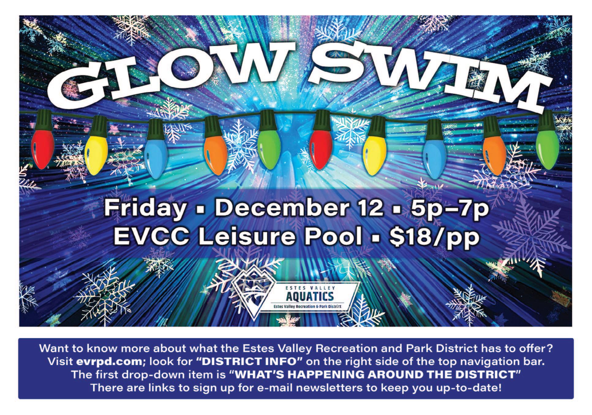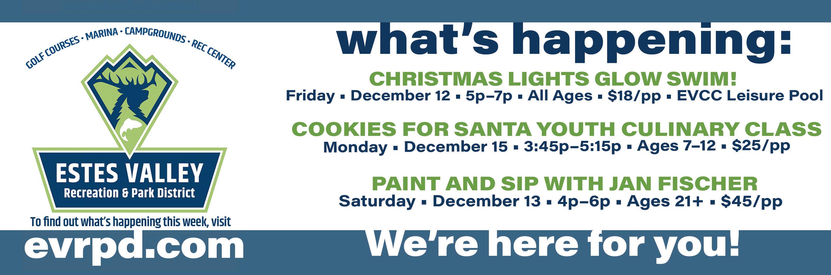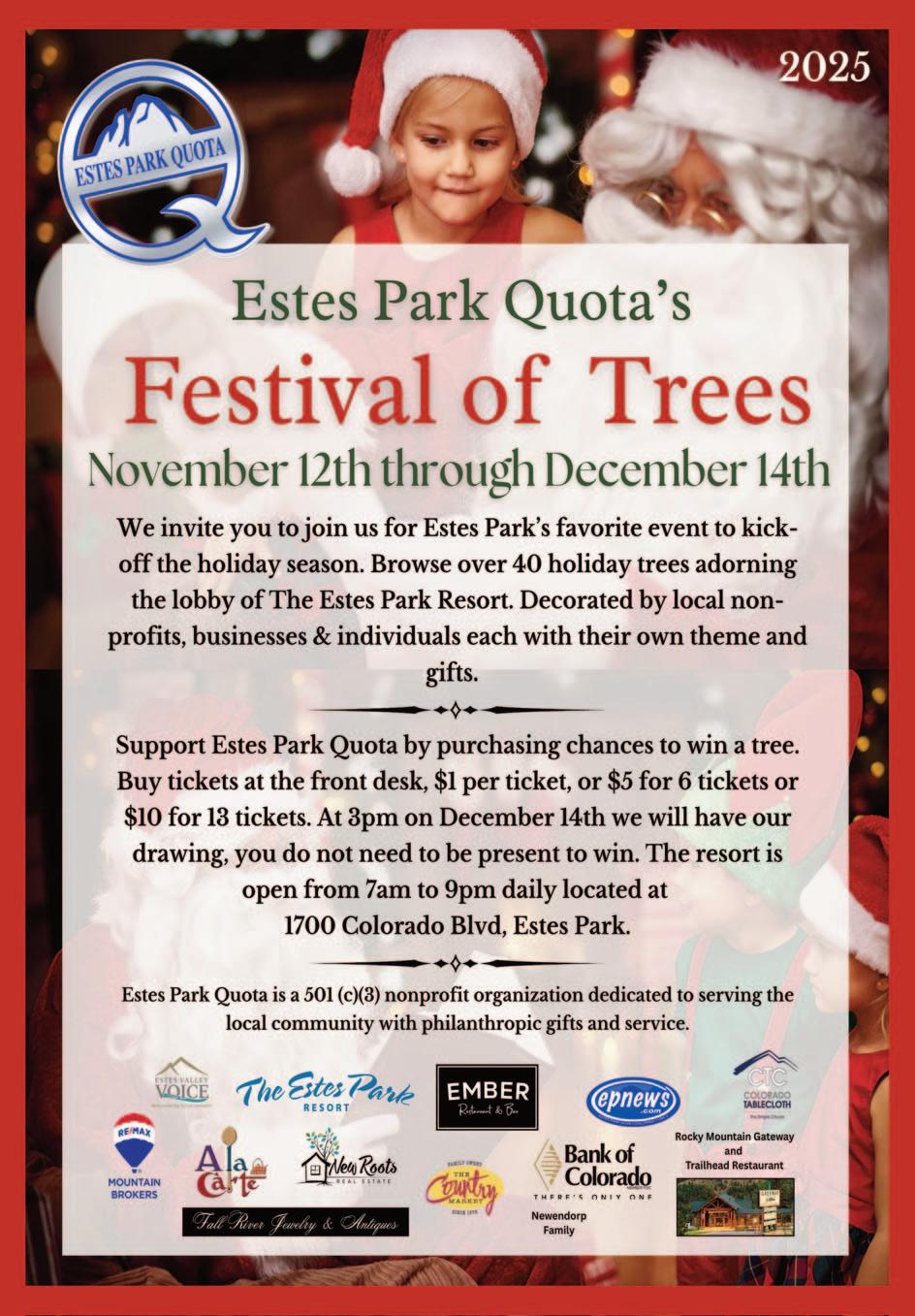 rides, train rides, face painting, hot chocolate, and treats. For more information on the Tree Lighting festivities, please contact Kayleigh Schissel in the Town’s Events Department at 970-5773904 or kschissel@estes.org.