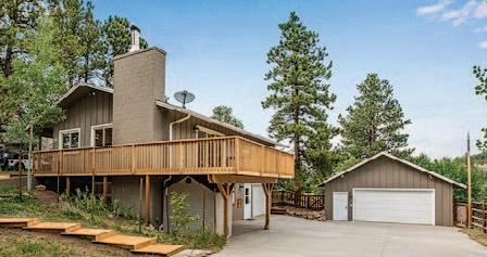2 Br/ 1 Bath home across from the Big Thompson. Fenced yard, garage, extra parking, two miles from Estes Park.