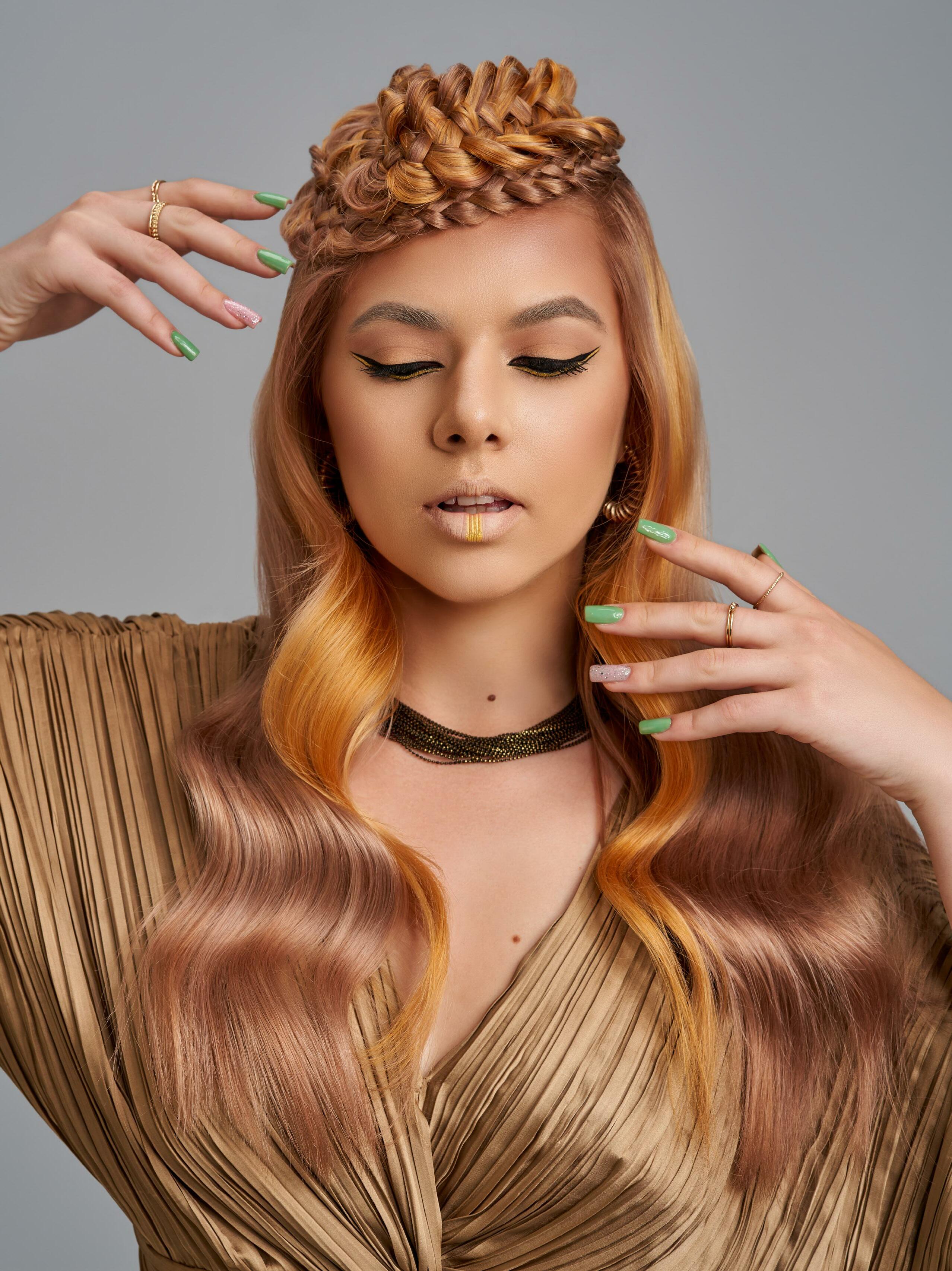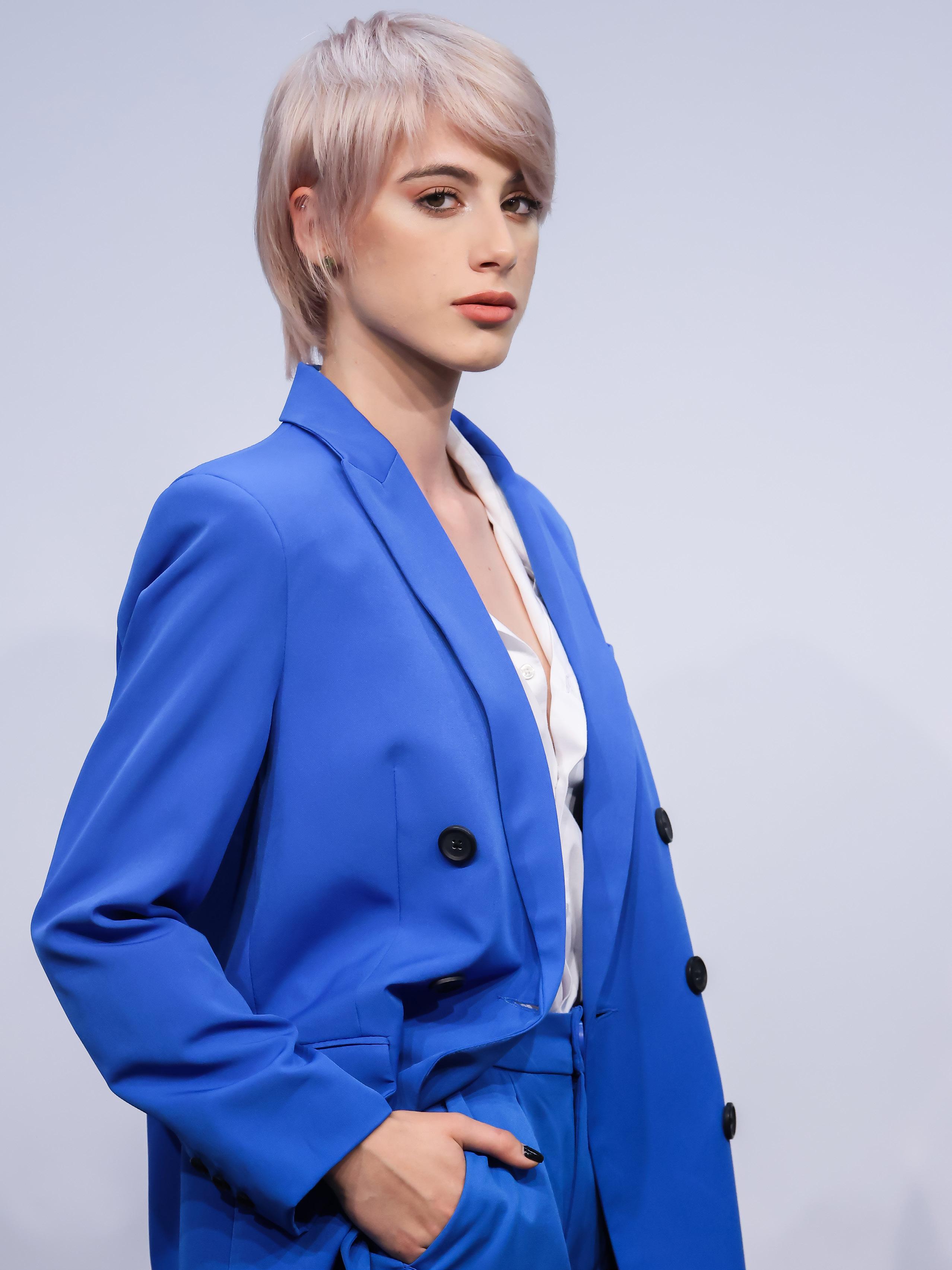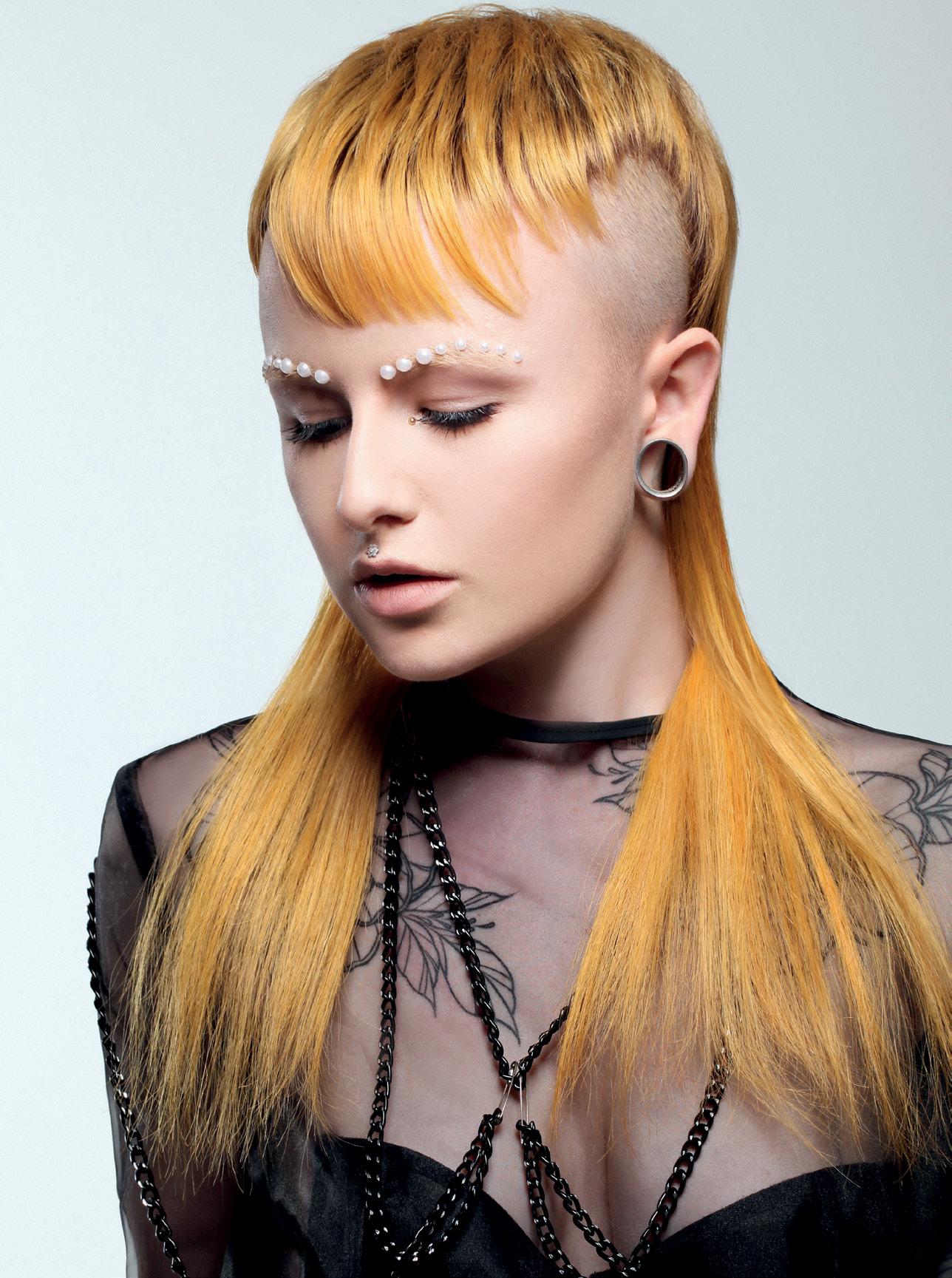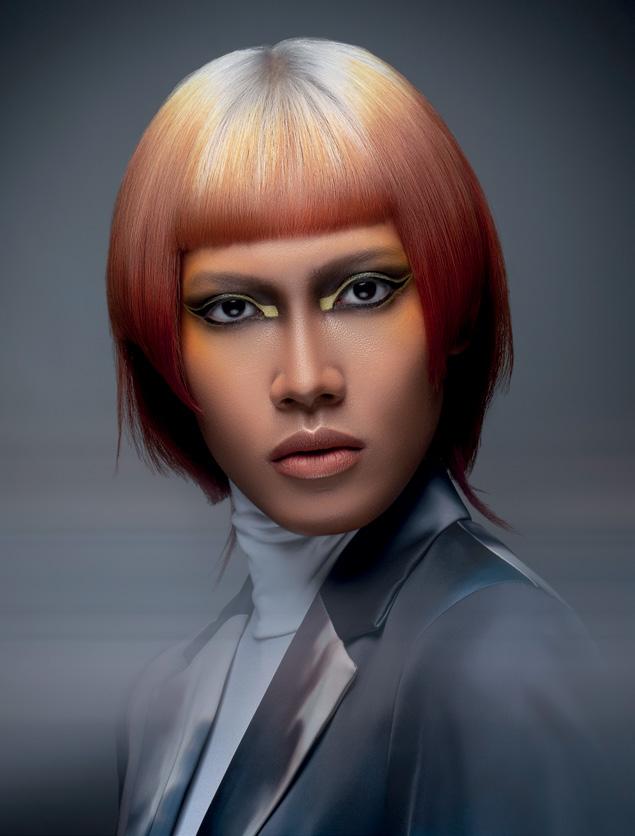 Acest look face parte dintr-o colec]ie de prim\var\-var\ pentru Newance de la Topchic. Pentru aceast\ colec]ie, am vrut s\ aduc r\coare #n var\. Per total, m-am jucat cu o selec]ie de nuan]e pentru a crea o armonie #ntre cald [i rece. Pentru culoarea p\rului #n sine, am folosit cenu[iu mat [i [aten rece #ntr-o tehnic\ de colorare bloc pentru a crea efectul fumuriu. Tunsoarea este minim\, dar edgy, cu deconectare prin breton pentru a scoate #n eviden]\ linia b\rbiei modelului. Pentru a finaliza, p\rul a fost coafat elegant, cu str\lucire ridicat\, pentru a-i oferi un aspect mai editorial [i edgy. Yuujin Ho (Singapore)