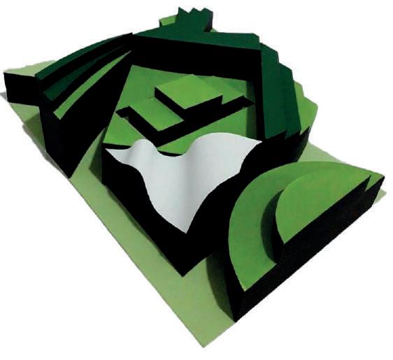Ejercicio libre, abstracto, producto del análisis figurativo de 3 conceptos, que nos generó un videojuego, aplicando funciones básicas, relación de forma, volumen y espacio, interrelaciones espaciales.