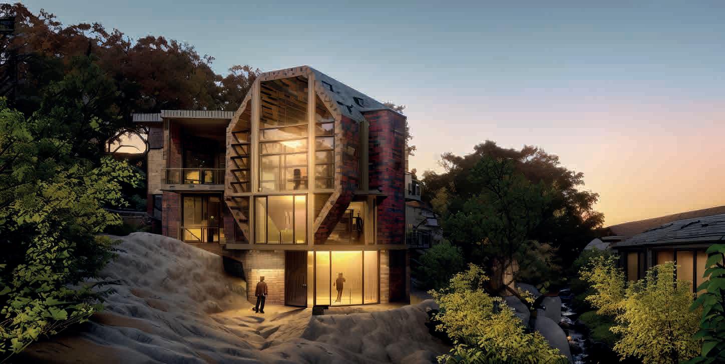 "Este proyecto de vivienda colectiva inspira en la Chacana para crear una comunidad interconectada y autosuficiente. Se abstrae la forma de la Chacana para el emplazamiento del proyecto, evocando la cosmovisión andina al integrar espacios para la vida comunitaria y la producción sostenible, reflejando los ciclos de la naturaleza y la cooperación. Al igual que el camino Inca unía territorios, esta propuesta busca enlazar a sus habitantes en un sistema de apoyo mutuo y bienestar colectivo."