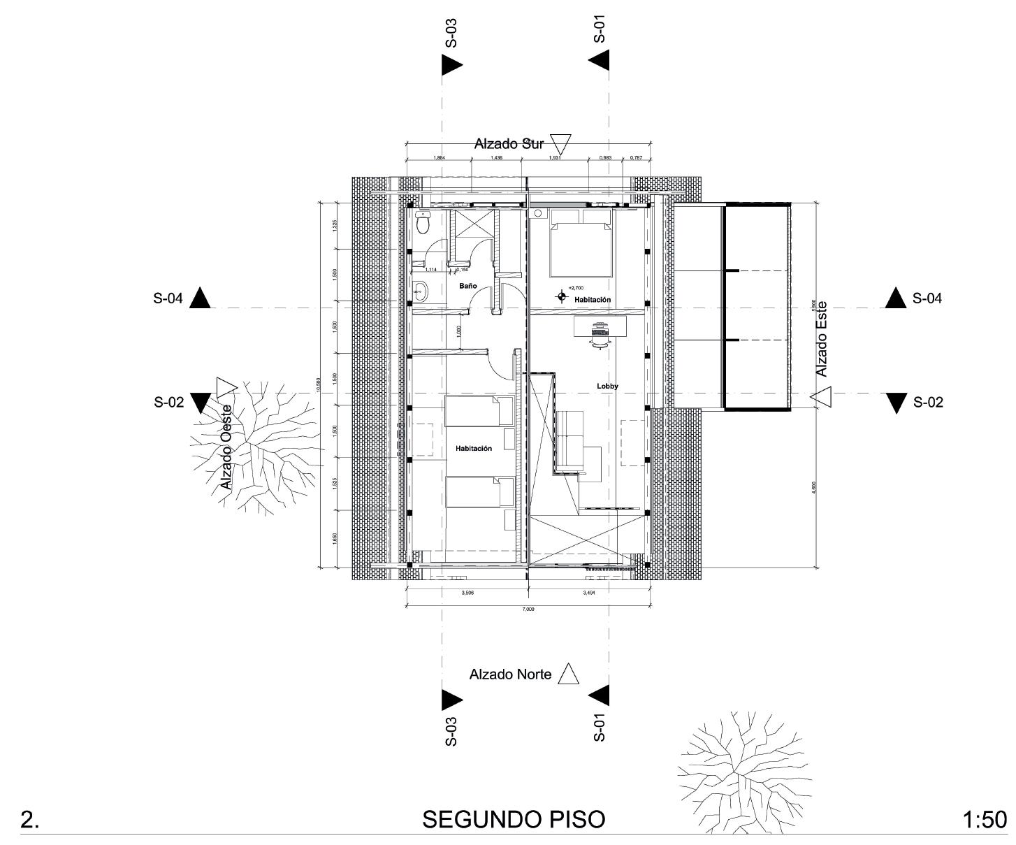 Proyecto hecho en mamposeteria, zapatas en concreto armado, para su implantación se terrace el terreno, sobre la pendiente en la que se ubica, (30%)