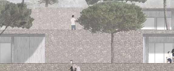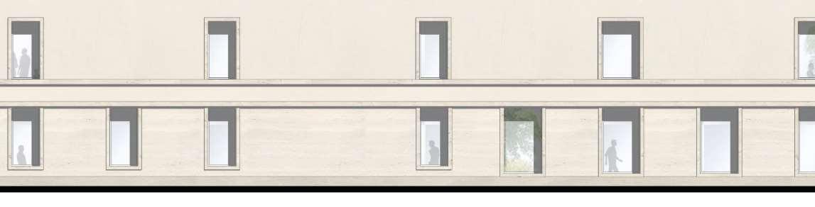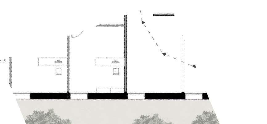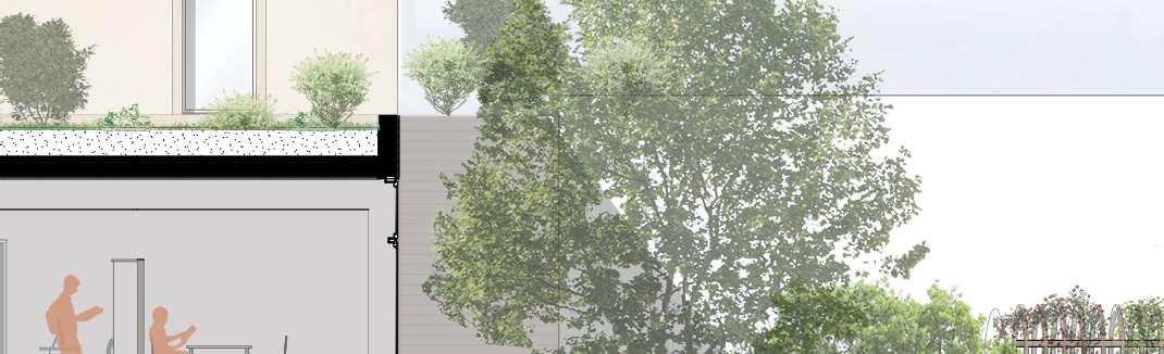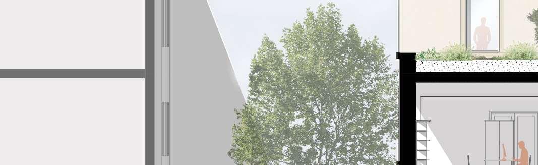 Le projet présente donc un rezde-chaussée très ouvert, qui devient un lieu de passage semi public,quipermetlaliaisonavec l’espacepublic.