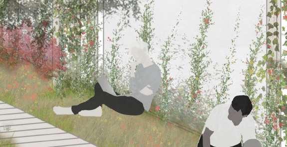 Leprojetconsistealorsàrevaloriser le paysage autour du fleuve du Lan ssargues, en se servant de son tracé de façon à ce qu’il organise le ssu urbain. Ce projet vise à amener la nature en ville et s’en servir comme unetrame.