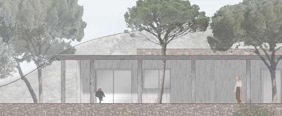 un enjeu de l’architecture est d’u liser la ruine, une vieille bâ sse ayant subit l’incendie, comme témoignage de la fragilité de la construc on humaine, face à la résilience et l’immensitédelanature.