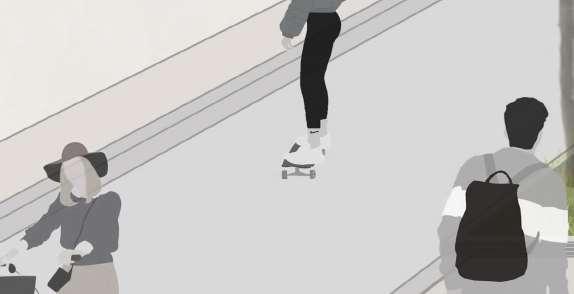 Deuxzonesontétéétudiéesenpar culier. Ici la rue qui dessert les logements est un espace public in miste, dépourvu de place desta onnement. Ainsi ilestprotégé dela circula on lourde, c’est un espace animé, oùl’oncircule,maisaussioùl’ons’arrête.
