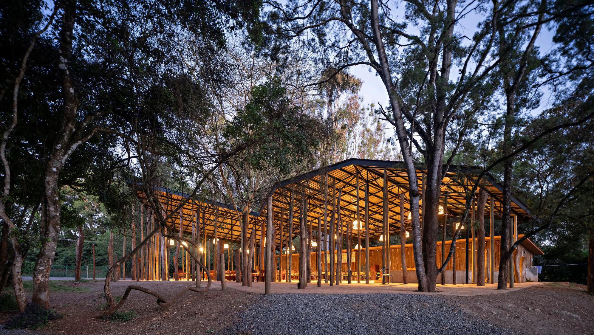 A school nestled within a forest, designed for a 10-year lifespan. The structures are fully demountable and carefully integrated into the natural landscape, built without cutting any trees or disturbing the existing ecosystem. Its architecture encourages students to interact with nature, blurring the boundaries between indoor and outdoor learning environments to create an immersive, nature-oriented educational experience
