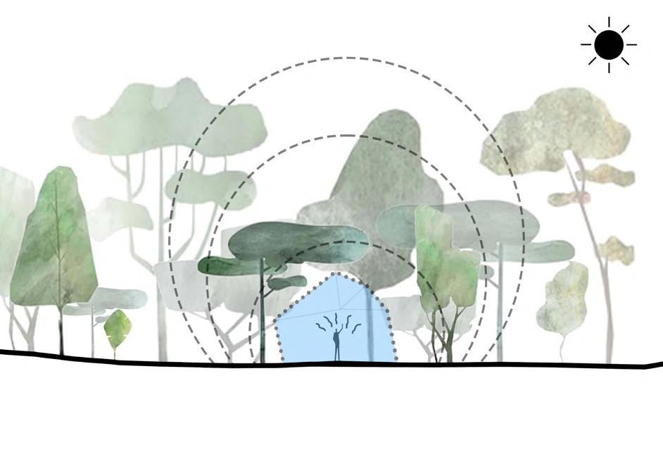 the sun-rays, reducing the amount of radiation that reaches the spaces below.
