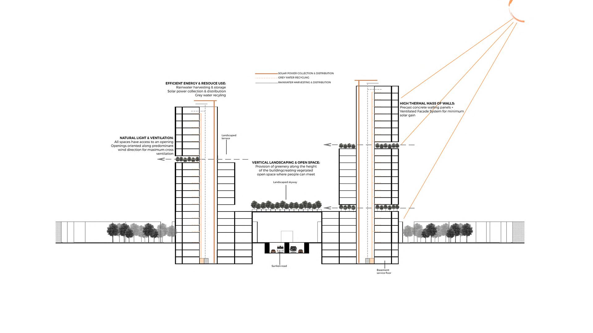 Simultaneously, the vegetation contributes to cooling down the ambient temperature.