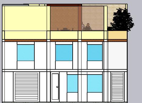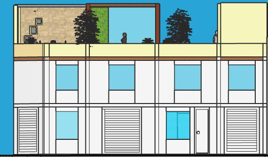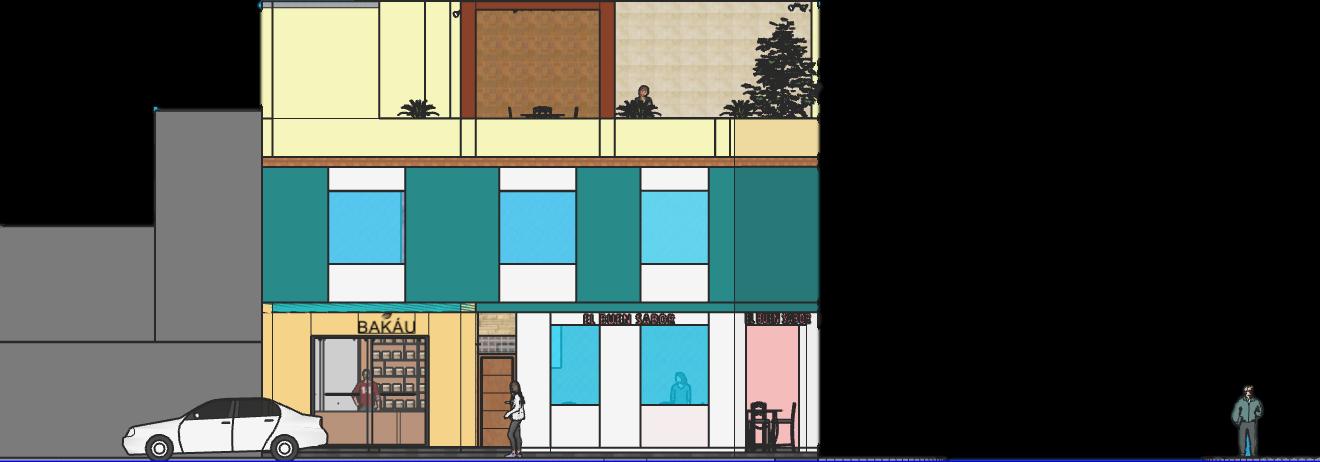 Cada bloque que salía de la primera planta era tienda y así la que queda ultima será de vivienda , en el segundo piso son las 2 viviendas y en el tercero vendría Acer la terraza que es una zona social que cuanta con ambientes siguiendo los ejes , al igual que las tiendas.
