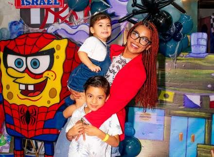 La fiesta tuvo un divertido concepto temático que combinó dos de los personajes favoritos de Israel: ¡Bob Esponja y Spider-Man! Una mezcla única, con decoración vibrante, actividades interactivas y muchas sorpresas que hicieron de esta celebración algo verdaderamente especial.