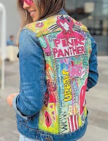 Denim jacket intervenida con diseños y pedrería by @macadesignshn